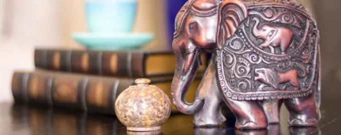 - Elefant. Die Figur eines Elefanten mit erhobenem Rüssel symbolisiert Weisheit, Erfolg und finanzielle Stabilität.