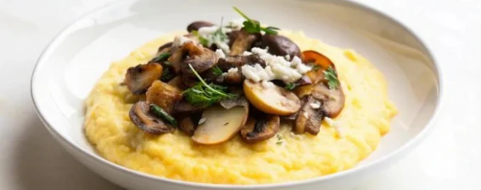 Echte huzulische Banosh mit Pilzen und Frühlingszwiebeln: einfach zu Hause zu machen